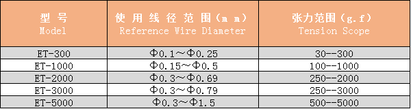 注:以上参数表因机型与系统张力不一样可能有偏差,以上线径范围仅供参考,若有异议及时与技术人员沟通