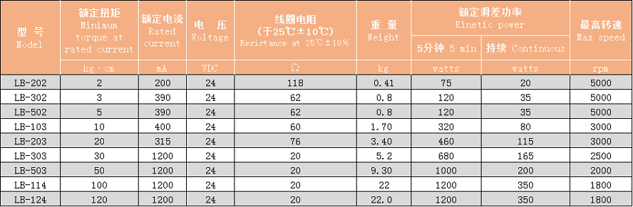 LB系列规格表 LB specifications