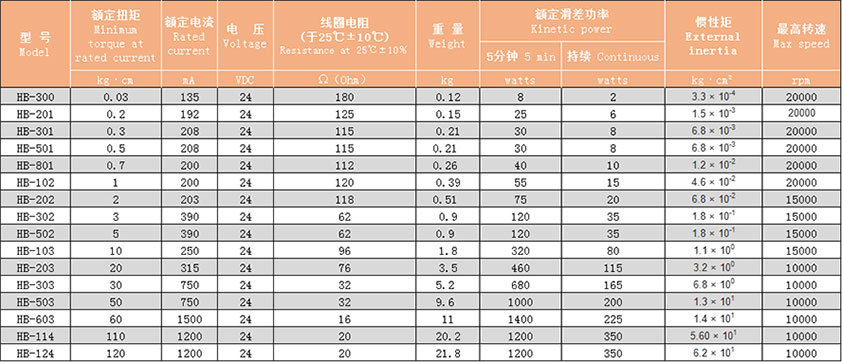HB系列规格表HB Series Specifications